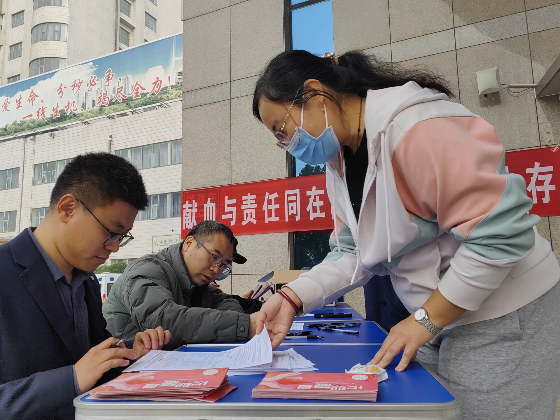 医护人员们或三三两两,或独自一人,有的是交代完手头工作,有的刚刚结束了一夜的值班,眼中还带着疲惫,但更多的是坚定和期待。他们轻声交谈着,分享着彼此献血的经历和感受。