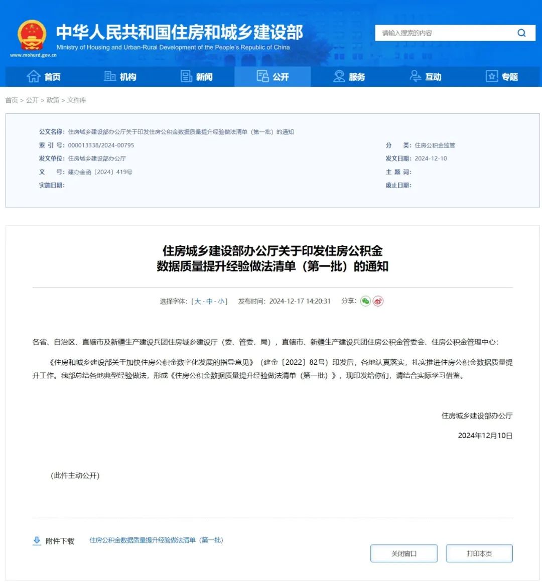 日前,住房和城乡建设部发布住房公积金数据质量提升经验做法清单,我市相关经验做法榜上有名。