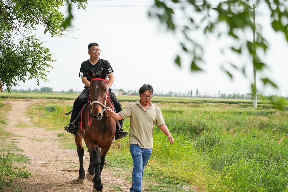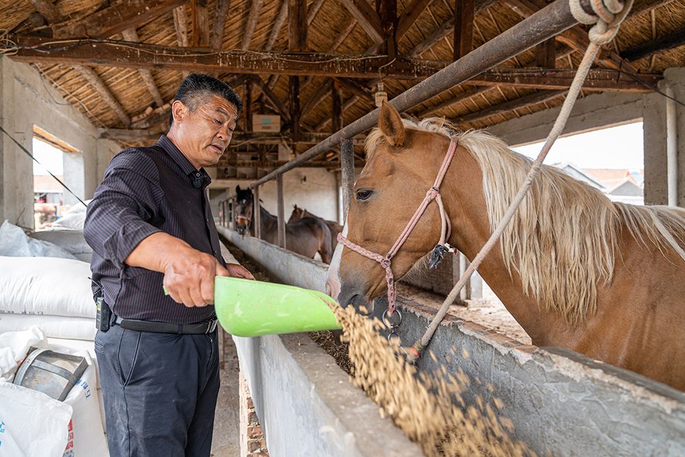 5月16日,在平原县王凤楼镇潘庄村振兴家庭农场,农场主张文杰正忙碌地给马喂草料。看着眼前健硕的马儿,他高兴地说:“我养马已有30多年了,靠着马匹租赁、售卖以及发展马术旅游,实现了增收致富。”