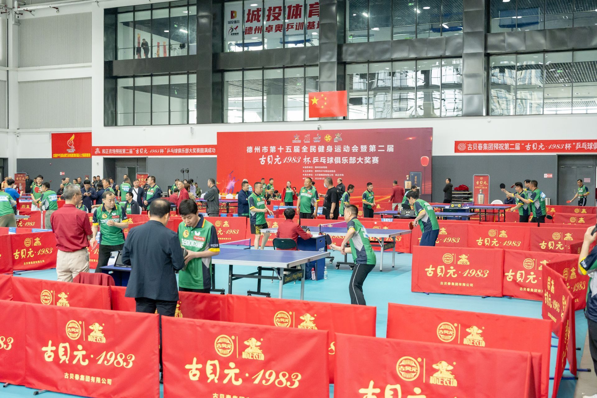 5月9日,德州市第十五届全民健身运动会暨第二届“古贝元1983”杯乒乓球俱乐部大奖赛在德州市体育公园体育展览馆开幕。