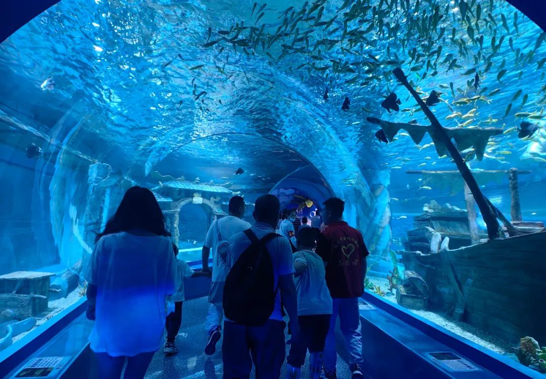 到达海洋馆后,在工作人员和讲解员的带领下,孩子们依次参观了各个展区,蔚蓝的海洋隧道、灵动的鱼群、色彩斑斓的珊瑚礁、优雅游动的水母……每到一处,孩子们都兴奋不已,好奇地观察着这些奇妙的海洋生物,认真地听着讲解员的介绍,不时发出阵阵惊叹。讲解员深入浅出的讲解,让大家对海洋生物的习性、特征以及海洋生态环境有了更深入了解,也激发了他们对大自然的热爱之情。