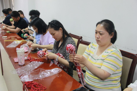 活动中,职工共同观看《端午时节巧养生》视频,体会中医养生与节气的奇妙关系,顺应自然界变化规律预防疾病、增强体质。端午节正值夏季,是一年中最好的养生时节,古人们凝结了用艾养生的中医智慧,通过视频大家学习到了端午节挂艾叶、熏艾、饮用艾叶生姜茶、艾叶橘红水等家庭养生疗法。随后,职工们动手制作艾草捶,包艾叶,捆绳,很快一个个保健锤制作完成,现场大家还学习了锤拍八虚,敲打全身经络的方法,体验艾草捶带来的乐趣。