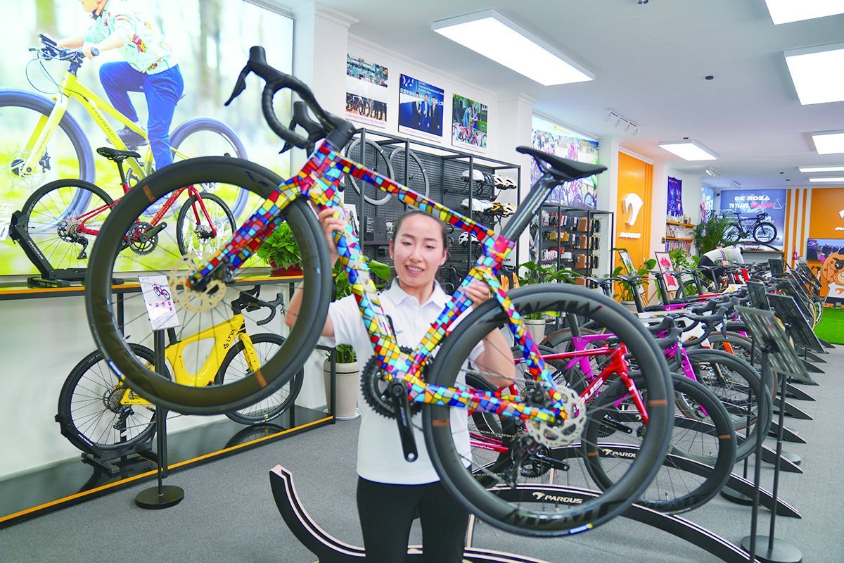 8月8日,在全国首家泰山体育超级工厂店启幕仪式上,泰山体育一次性推出瑞豹碳纤维马赛克自行车、家庭定制人造草坪、亲子健康魔方及智能公交健康驿站四款新品。其中,设计原型来自多次登上奥运赛场的国家队用车的瑞豹自行车备受瞩目。