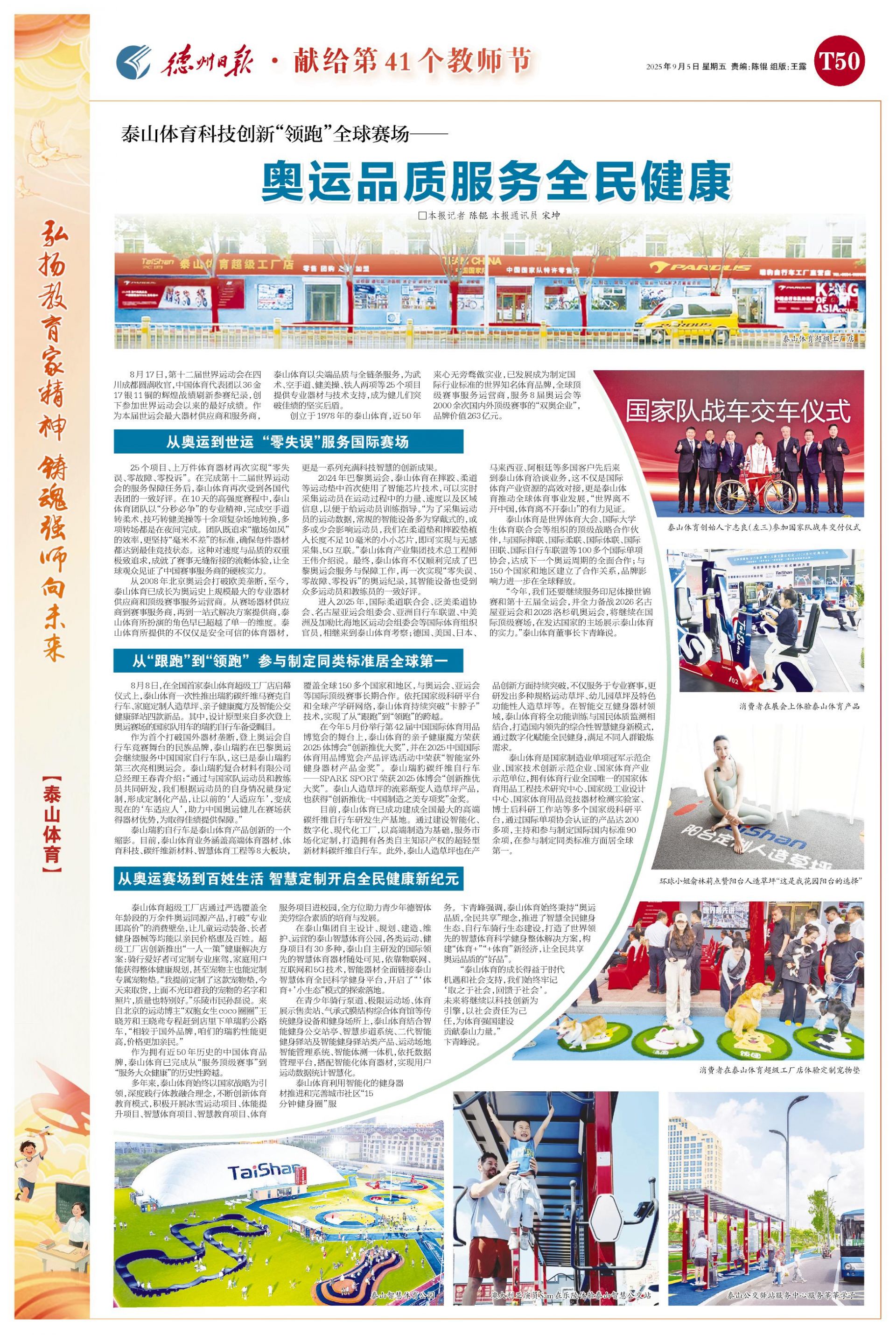 作为拥有近50年历史的中国体育品牌,泰山体育已完成从“服务顶级赛事”到“服务大众健康”的历史性跨越。