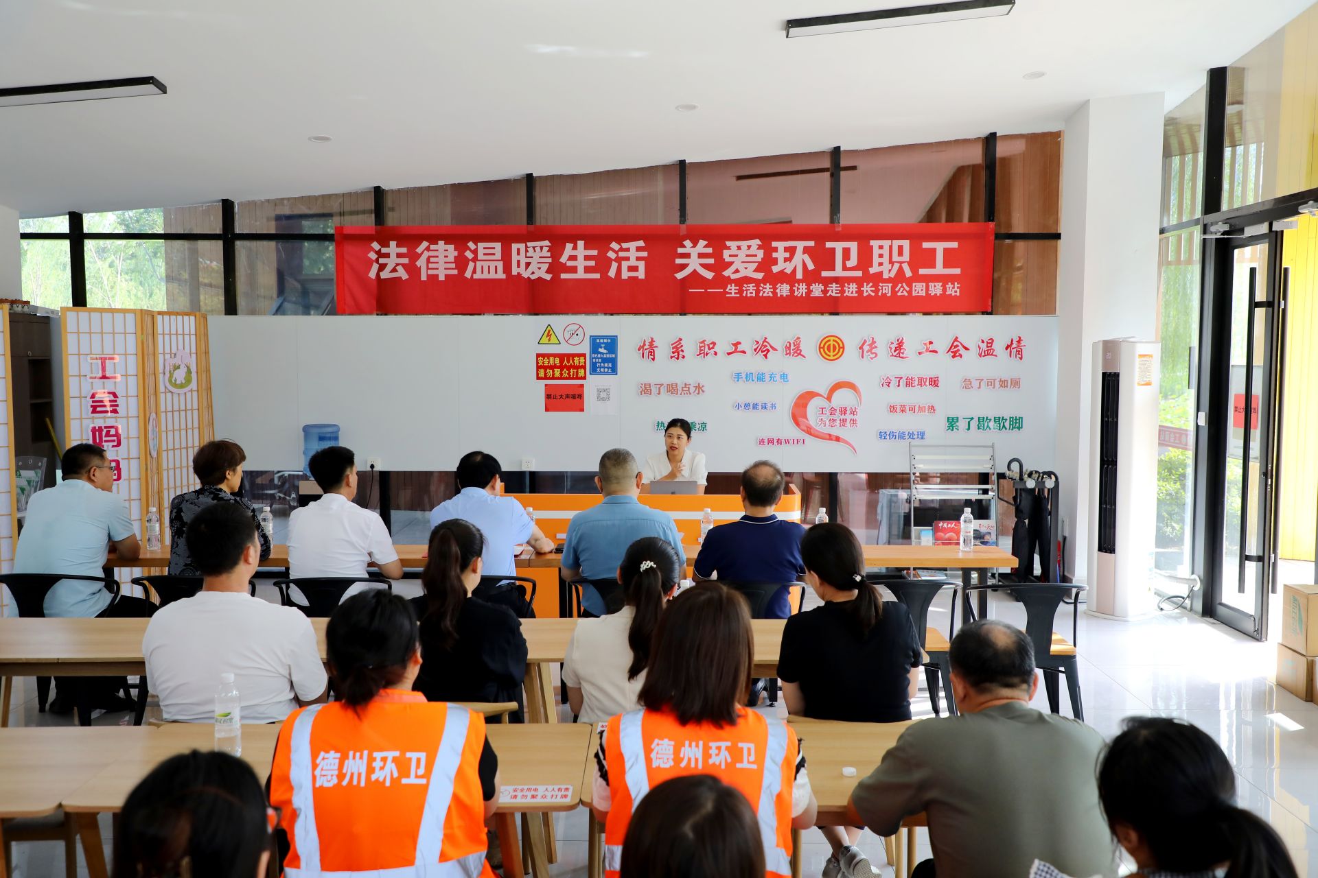 为切实提升一线环卫职工生活法律知识储备,营造尊法学法守法用法的良好氛围,近日,市城管局环境卫生服务中心联合德州市司法局、山东载熙律师事务所,在长河公园户外劳动者驿站举办以“法律温暖生活 关爱环卫职工”为主题的生活法律讲堂活动。活动通过专业讲座、互动答疑、发放普法礼包等形式,为辛勤的“城市美容师”们送上了一份实用的“法治大餐”。