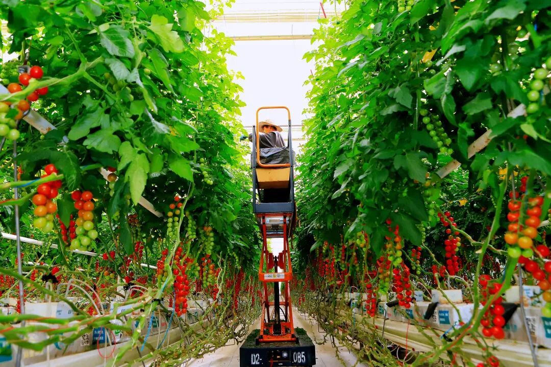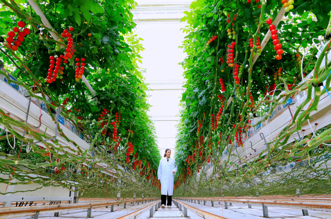 一排排植株整齐排列,传感器与滴灌系统替代了传统的土壤,红、黄、橙、绿各色果实如宝石悬挂,每一颗都记录着从定植到成熟的全程数据。