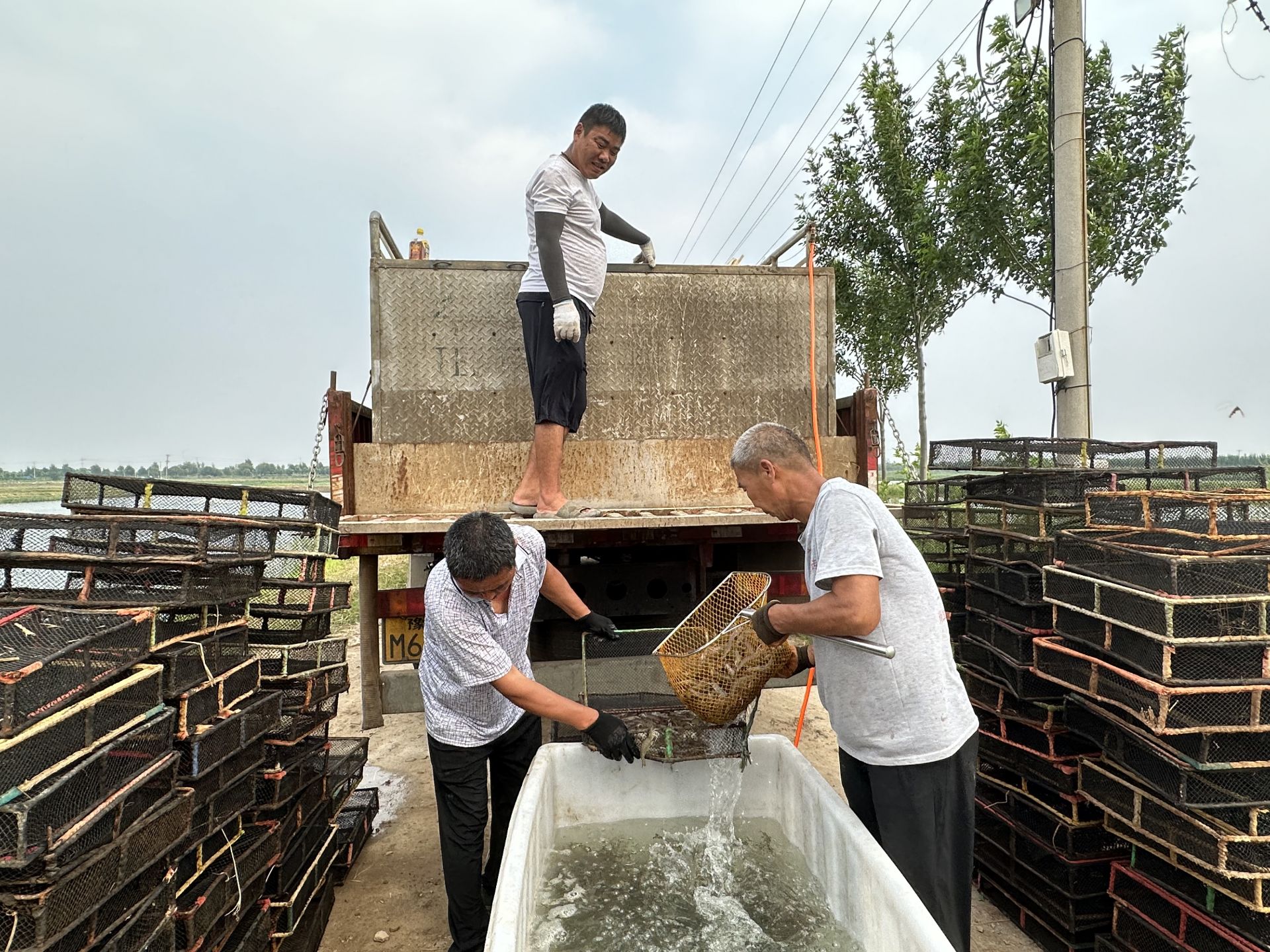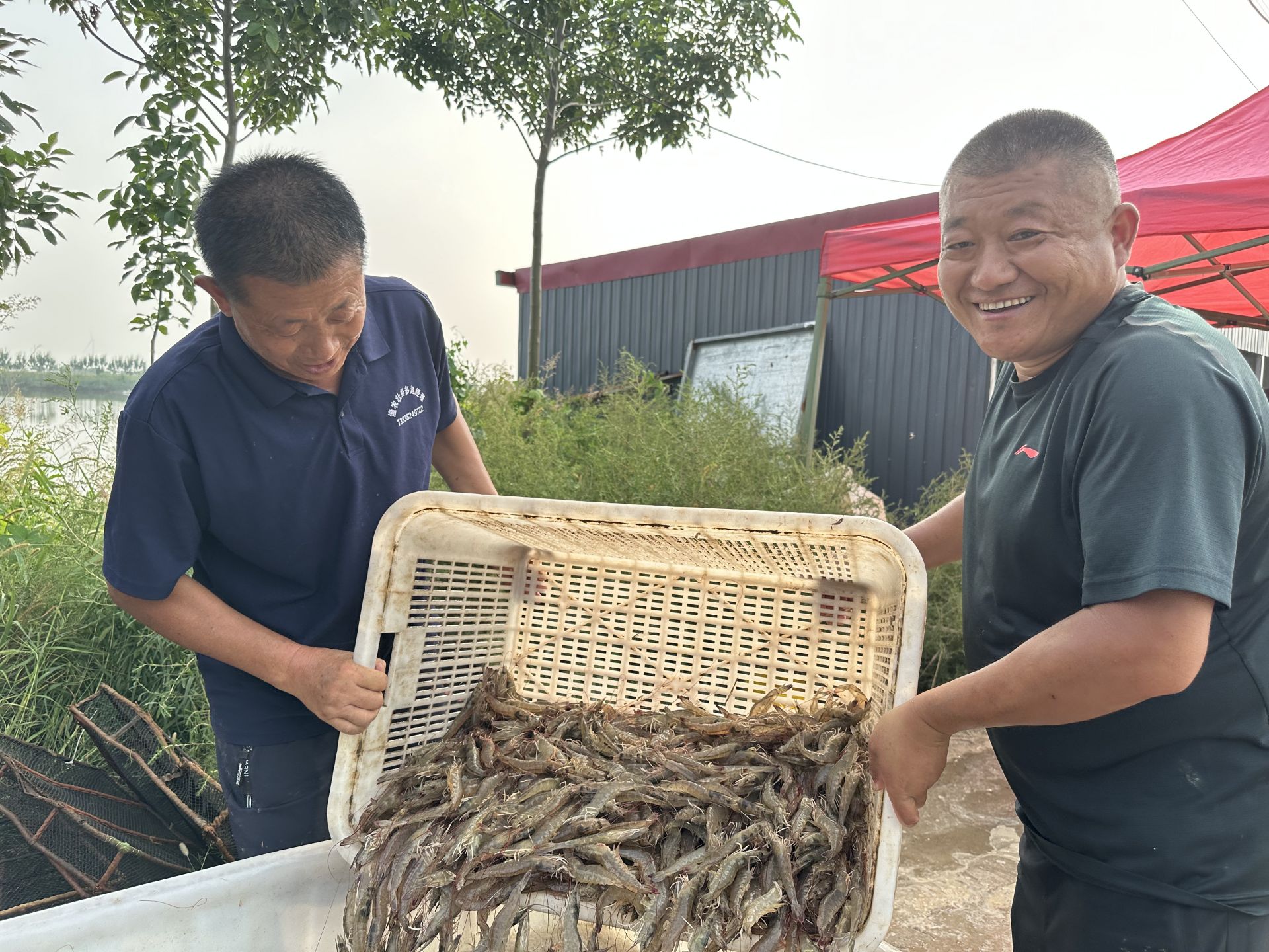说干就干。修整、建池、蓄水……李新邀请专家驻场观察,一对一指导,手把手教。5年时间,从1个池子到17个池子,从几千尾到600万尾,废土塘实现华丽转身。“咱这水质咸度高,特别适合养虾,与其他地方相比虾的肉质更鲜美,且生长速度快、个大肥美,市场价达到了40元/公斤,畅销河南、江苏、北京等地,每年这个时候,客商上门等着取货。”李新开心地说。