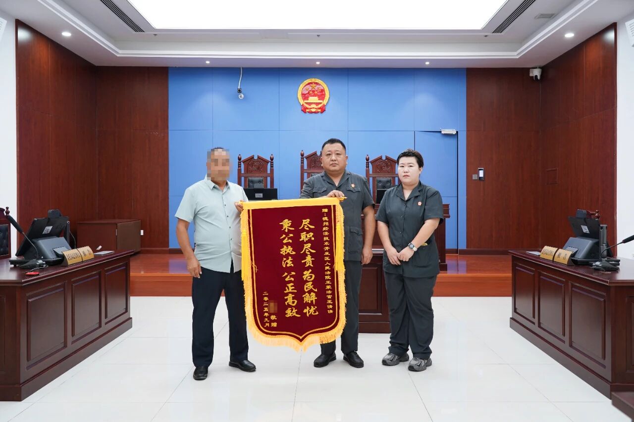 近日,劳务者受害责任纠纷案当事人将一面印着“尽职尽责为民解忧 秉公执法公正高效”的锦旗,送到德州经开区法院王蒙法官手中,以此表达对法官的赞赏与感谢。