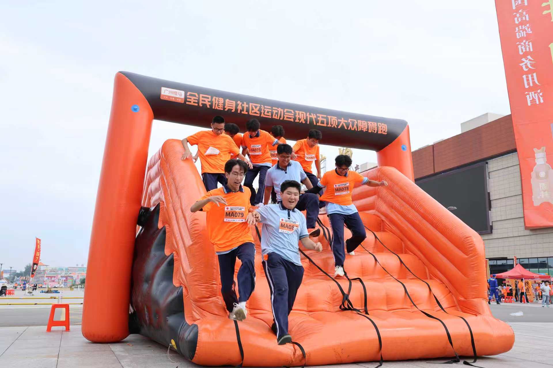 现场氛围热烈高涨、活力迸发。2.4公里的障碍跑赛道依托平原德百广场的场地优势,设置9个趣味障碍关卡,既对选手的身体素质提出考验,更增添了比赛的观赏性与娱乐性。赛场上,选手们火力全开、驰骋向前:时而奋力攀爬“云梯”、纵身跨越“山脊”,时而在平衡木上稳步穿行,又敏捷闪避“陷阱”,在秋日暖阳下尽情释放运动激情,畅享挑战乐趣。