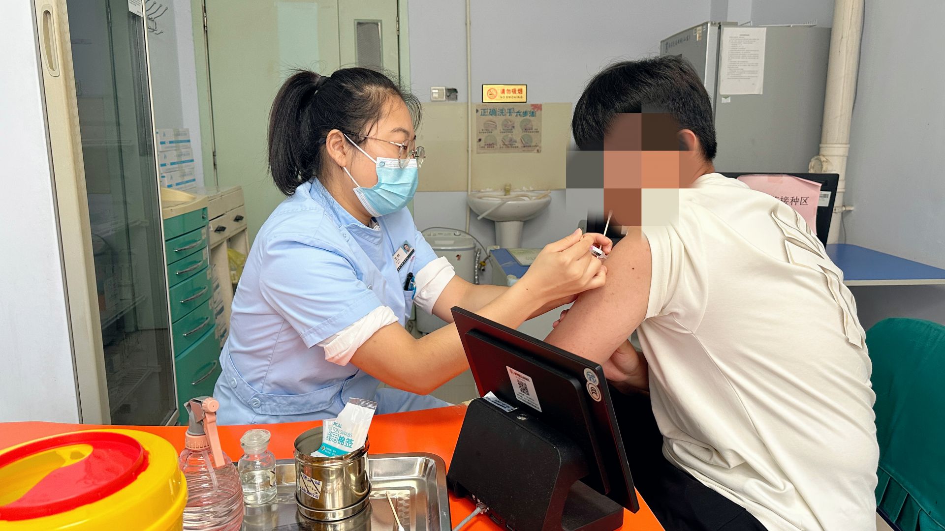 “小朋友,真棒!阿姨没骗你吧?一下子就打完了,很快的。”接种室里,护士刘坤一边用无菌医用棉签帮刚接种完的童童(化名)轻压针孔止血,一边柔声安慰,并不忘嘱咐家长带孩子到留观区观察30分钟后再回家。随后,她又补充叮嘱:“今天别洗澡,避免接种的针口碰水,防止感染;如果出现高烧不退或者胳膊肿得特别厉害的情况,一定要及时跟我们联系,千万别硬扛。”