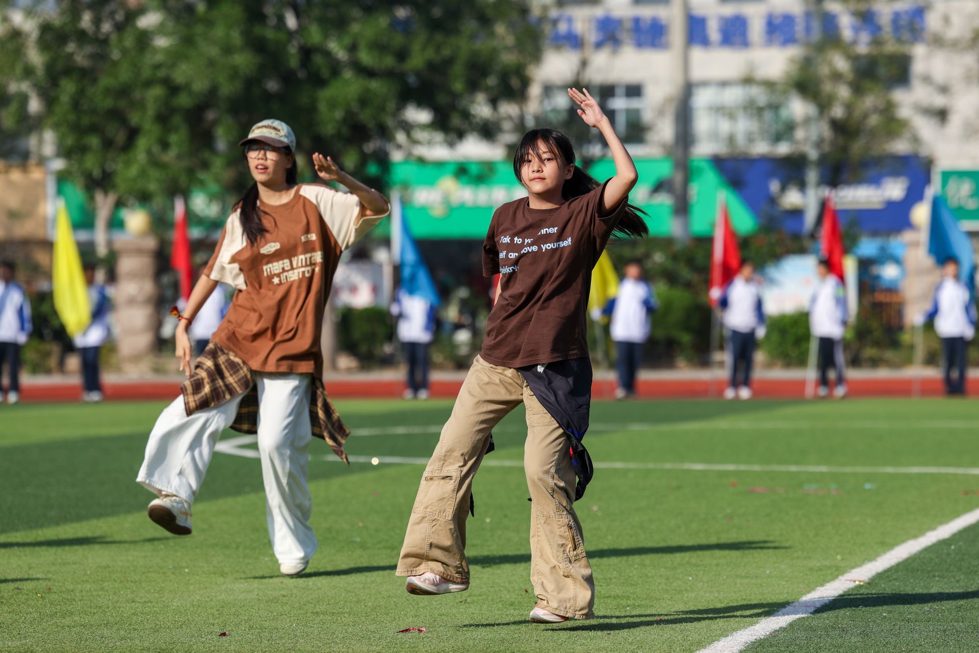 精彩纷呈的特色节目表演将现场气氛推向高潮。三八路校区学生的舞蹈《万疆》舞姿优美,街舞《Famous》动感十足,民族舞《光亮》韵味悠长;大学路校区的学生们同样献上了多元的节目:活力四射的啦啦操瞬间点燃全场,刚柔并济的武术表演彰显了中华传统文化的魅力,而自编自演的情景剧则情节生动,引发了观众的深深共鸣。随后,女生礼服走秀《鎏光织梦》典雅自信,乐队表演《海阔天空》引发现场大合唱,歌曲串烧、团体操等节目轮番上演,赢得了师生们的阵阵掌声。这些丰富多彩的表演,充分展示了学校素质教育的丰硕成果和学生的多元才华。