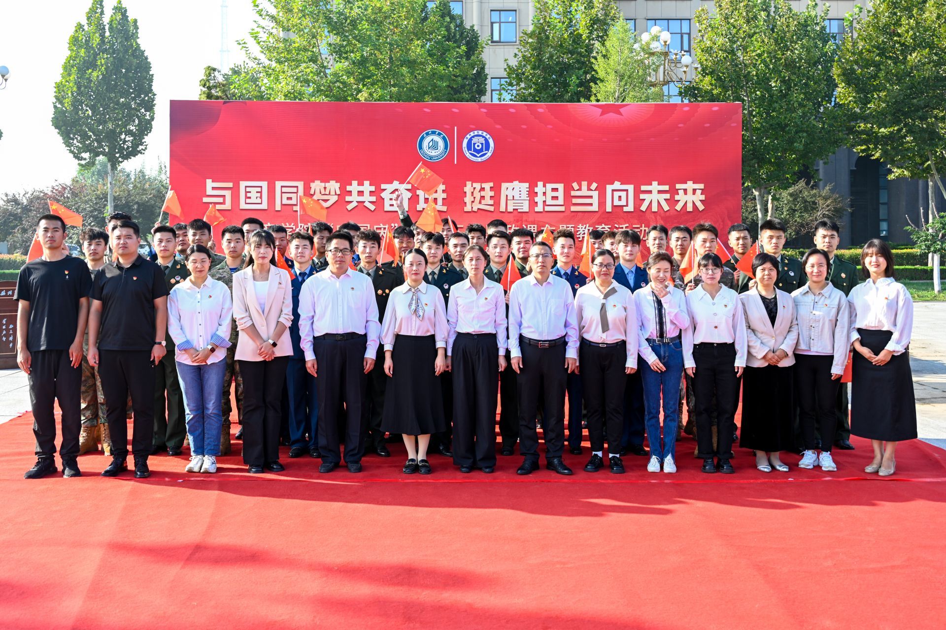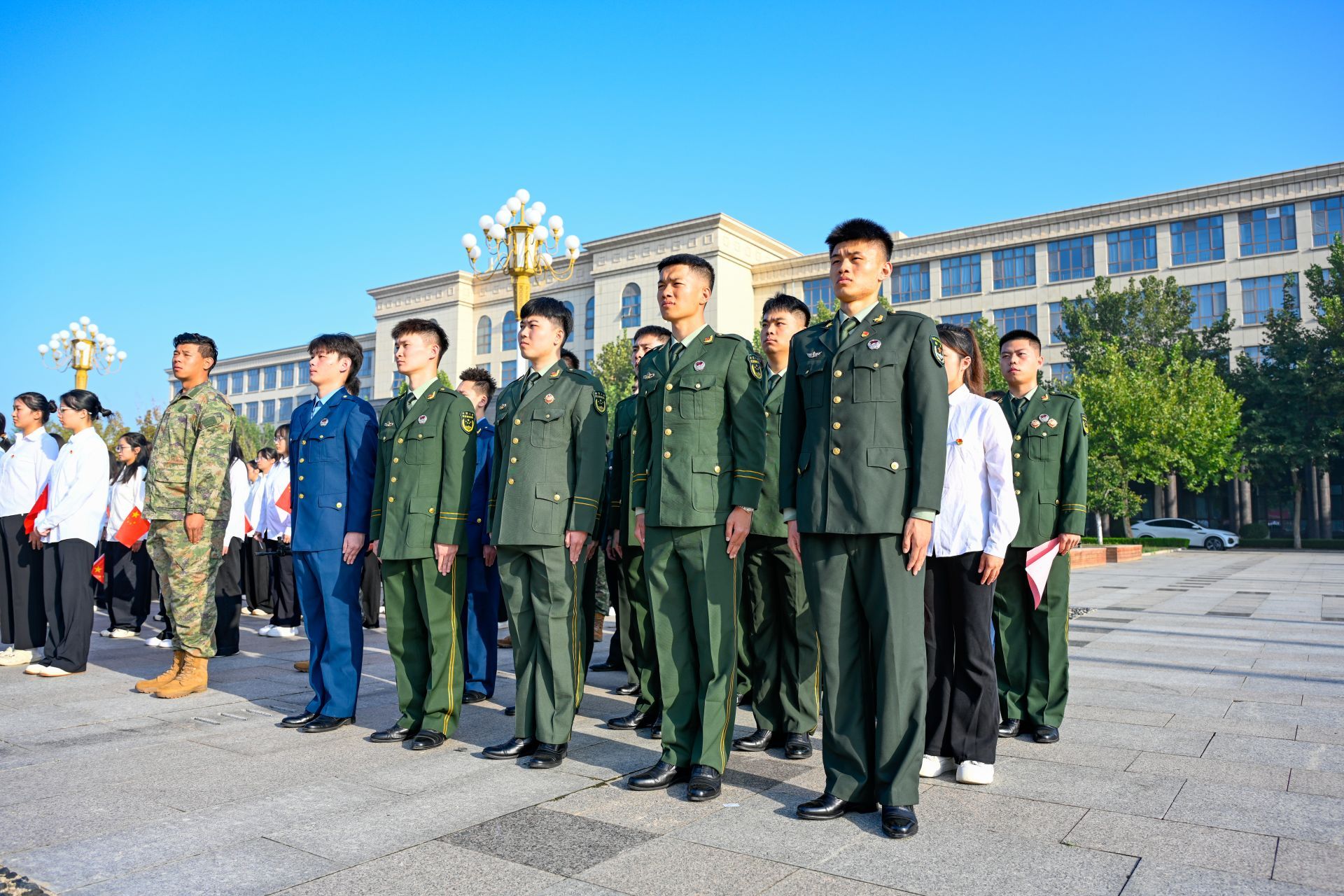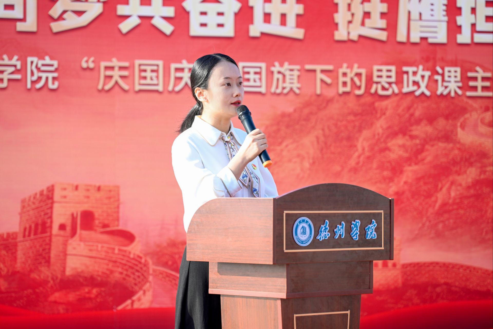 9月29日上午,德州学院商学院在东校区腾飞广场开展“与国同梦共奋进,挺膺担当向未来——‘庆国庆’国旗下的思政课”主题教育活动。商学院党委领导班子、党员教师代表、全体辅导员及学生党员、入党积极分子等200余人参与活动。
