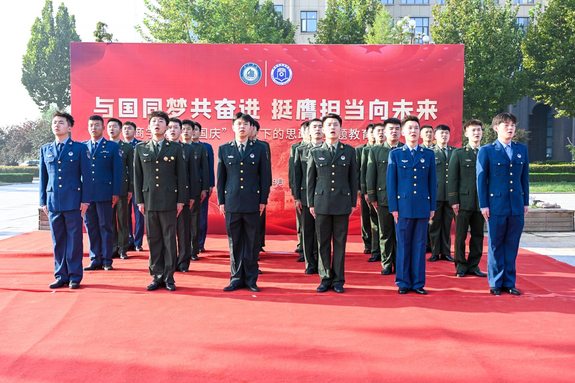 党员学生代表梁文琪以《肩负时代使命,书写青春华章》为题发表演讲,号召青年学子锤炼过硬本领,在知行合一中勇担时代重任,让青春在服务国家发展与民族复兴的实干奉献中绽放光彩。2025级退役大学生士兵带来的战术展示精彩纷呈,他们动作刚劲、配合默契,充分展现了退役军人过硬的军事素养与精神风貌。随后,师生共同合唱《歌唱祖国》,激昂的旋律回荡广场。歌声落幕之际,在场学生集体庄严宣誓,以铿锵誓言表达青春向党的坚定信念。