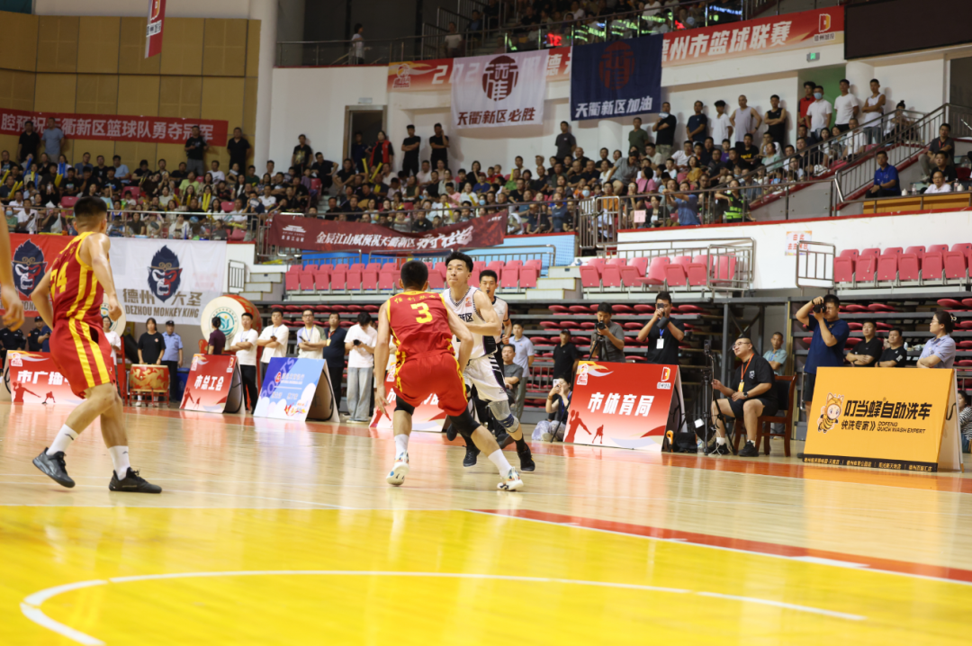 9月13日晚,首届“德BA”联赛天衢新区队对阵临邑队的比赛激战正酣。体育公园北区的星空夜市里,巨型屏幕下坐满了热情的观众。屏幕内,球员们奋力拼抢;屏幕外,烧烤、小龙虾的香气四溢。球迷们的欢呼声与城市的烟火气交织,将青春的活力瞬间拉满。