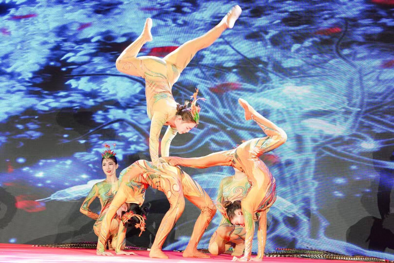 演出现场,德州市杂技团演员们向中外观众呈现了一场融合优秀传统与现代创新的综合杂技演出,柔美灵动的《百鸟朝凤》、刚劲有力的《飞叉》、轻盈优雅的《蹬伞》,以及气氛热烈的《草帽》《转碟》《空竹》和压轴节目《钻圈》等,现场掌声、惊呼不断,气氛高涨。