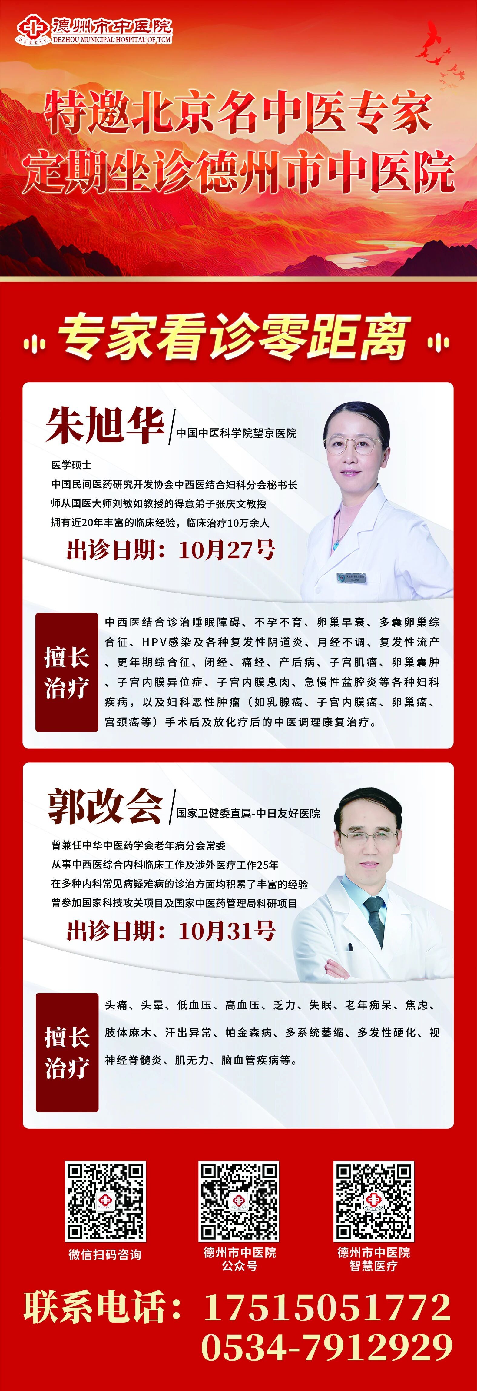 为方便德州市民在家门口获得优质的中医诊疗服务,德州市中医院邀请不同专业的北京名中医专家来院坐诊。建议有就诊需求的市民提前预约,在就诊时请携带好相关病历资料,以便专家更准确地了解病情,制定诊疗方案。