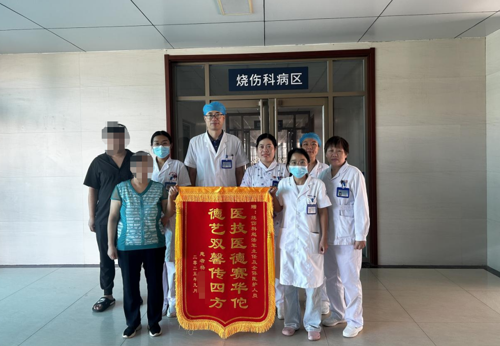 三十个日夜的鏖战,三十次与死神的擦肩。当李先生终于能勉强坐起身,对着镜子露出久违的笑容时,监护仪上的各项指标也趋于平稳。“你们不仅救了他的命,更挽救了我们整个家庭!”出院时,李先生的家属热泪盈眶,激动地将一面的锦旗郑重地交到烧伤科医护人员的手中,感谢救治团队所有成员对李先生不离不弃地坚守和精准救治。