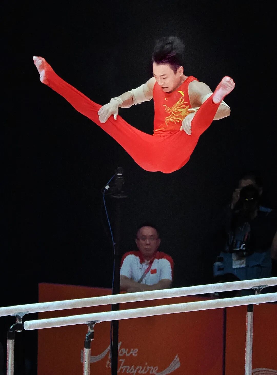 比赛中,队员们凭借高水平发挥,与器材配合默契。邹敬园在双杠上完成高难度下法时,器材恰到好处的弹性,助他平稳落地;兰星宇在吊环上做力量动作时,器材的稳定性让他毫无后顾之忧……