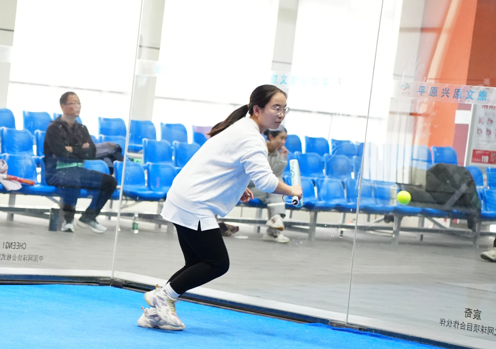 开赛后,各赛场迅速进入白热化状态。选手们迅速进入状态,赛场上,网球与特制玻璃墙碰撞的清脆声响、选手奔跑的脚步与呐喊声、观众的助威声交织在一起,充分展现了这项运动独特的竞技魅力与观赏性。