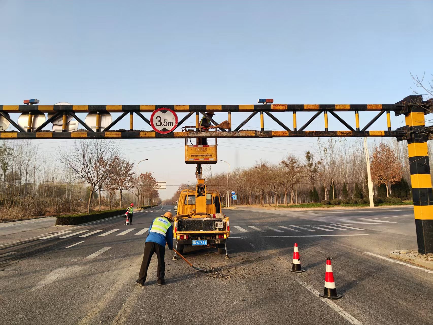 系统整治限高设施。组织专业队伍对限高杆标识牌、固定螺栓、反光设施等逐一检查,紧固松动部件,更换破损老化设施,清除杆体附着杂物,确保设施完好、功能正常。