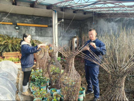 创新培育提质,精雕细琢精品景观。立足北方气候特征,中心精心遴选生长态势优良、枝条柔韧性强的绚丽海棠,探索花瓶造型树培育技术。通过科学蟠扎引导枝条缠绕塑形,严控温室大棚温湿度与光照条件,精雕细琢打造株型饱满、形态优美的海棠花瓶造型树。这批花瓶造型树兼具观赏性与实用价值,可广泛应用于游园街角、道路节点等场景,能有效丰富城市绿化艺术感与辨识度,为城区增加别致景观。