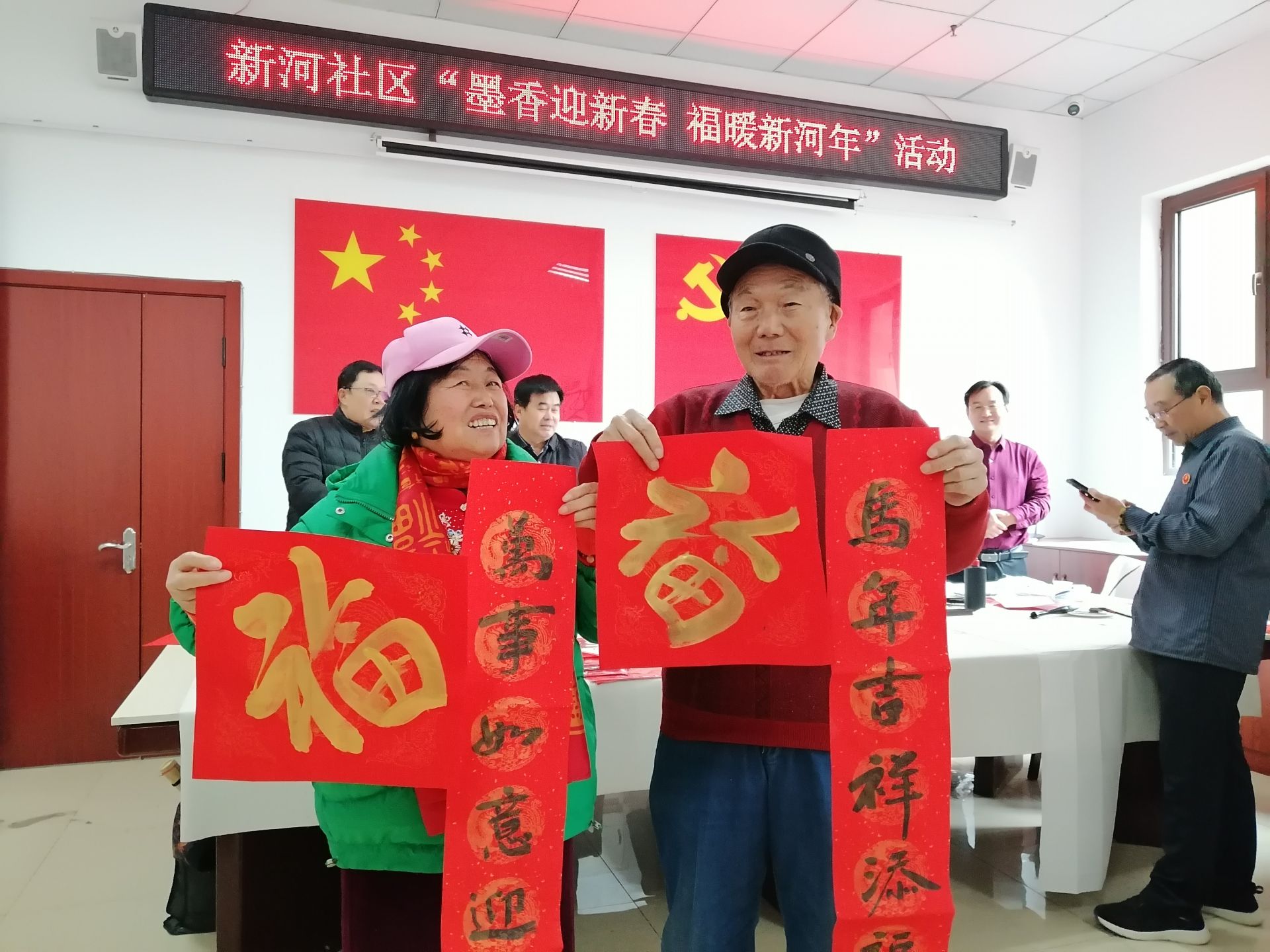 2月4日,德城区新华街道办事处新河社区开展“墨香迎新春 福暖新河年”活动,社区邀请来自市直书法家协会的7名书法家现场书写春联和福字,并赠送给社区居民。