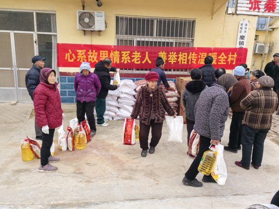 张寨村村民张杨杨常年在北京经商,虽身在异乡,却始终心系故土、情牵乡邻。为回馈家乡养育之恩,他专程为村里105 名 70 岁及以上高龄老人送上爱心物资,为每位老人发放大米、面粉、食用油各一份,这已是他连续第二年在春节期间为村里老人送上关怀与温暖。活动现场,老人们有序排队领取物资,脸上洋溢着幸福的笑容,纷纷向爱心人士表达真挚谢意。