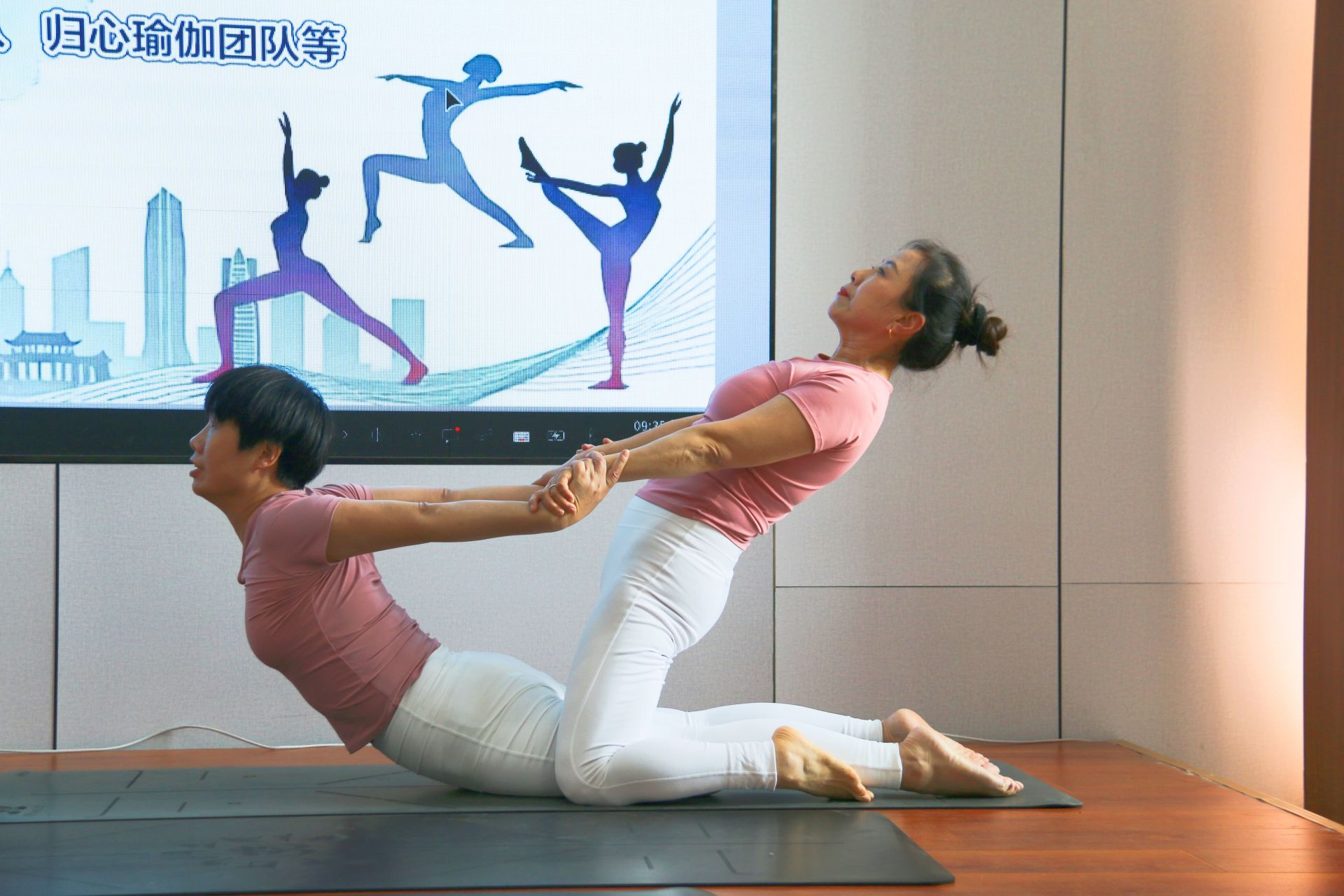 比赛现场,伴随着舒缓的音乐,选手们将一个个瑜伽体式演绎得舒展优美、刚柔并济。单人组的选手们身姿挺拔,在呼吸与动作的配合间,展现出独有的优雅与力量,每一个伸展、扭转、弯曲的体式都精准到位,尽显瑜伽的独特魅力;集体组的参赛队伍则配合默契,动作整齐划一,队员们步调一致、心神相融,将团队的协作之美与瑜伽的身心之美完美结合。赛场之上,选手们用专业的表现诠释着瑜伽的修行内涵,也展现出新时代女性健康向上、积极乐观的精神风貌。
