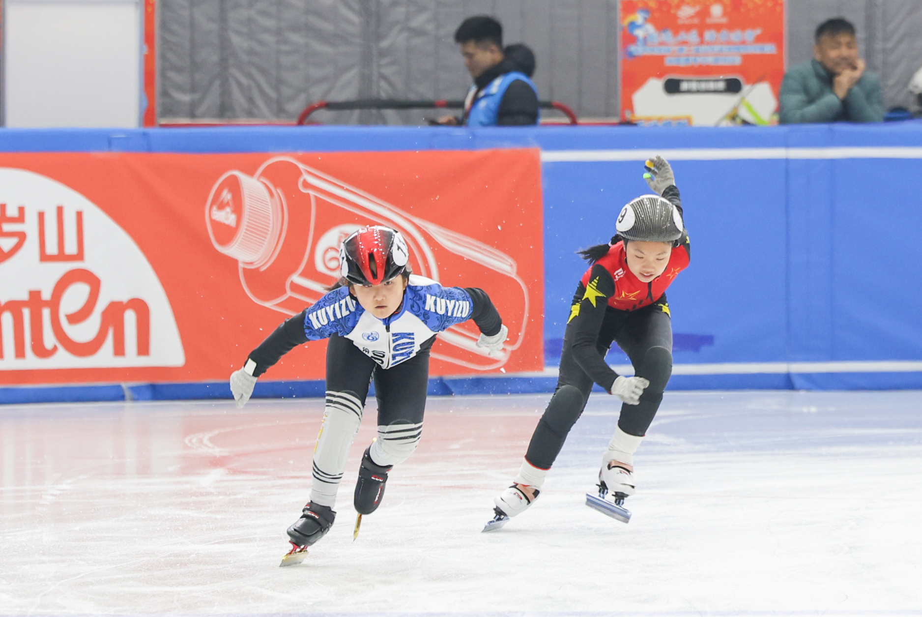 少年女子乙组300米计时赛:星尘冰上运动中心的张修语和郑惠溪表现出色,分获亚军和季军