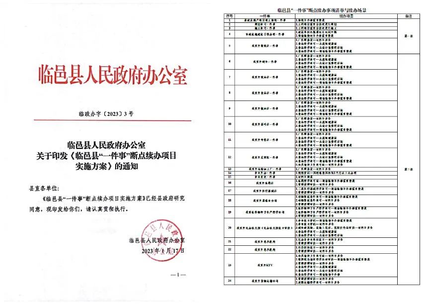 图 | 《临邑县政务服务“一件事”断点续办实施方案》《“一件事”断点续办事项清单与续办场景》