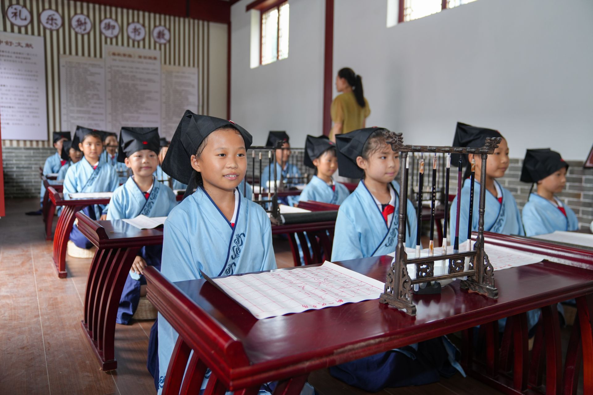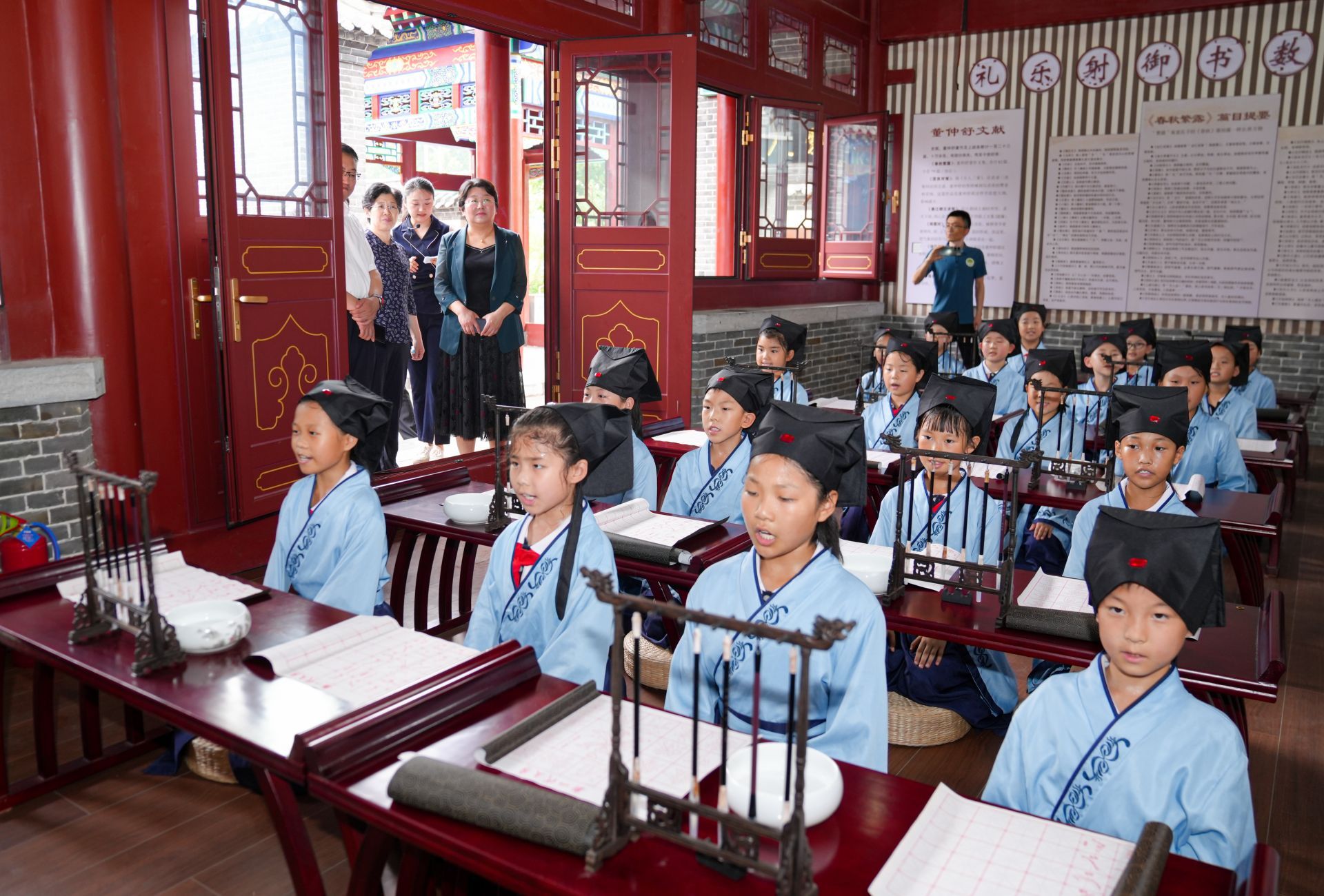 繁露园于今年4月建成,包含醇儒书院、繁露台城市书房、聚贤堂非遗展厅等部分。这里定期举办各类国学活动,让优秀传统文化浸润青少年的心灵。孩子们来到这里,穿汉服、行汉礼,参观董子纪念馆,体验国学课程,在他们小小的心灵里,文化自信的种子已经播下。
