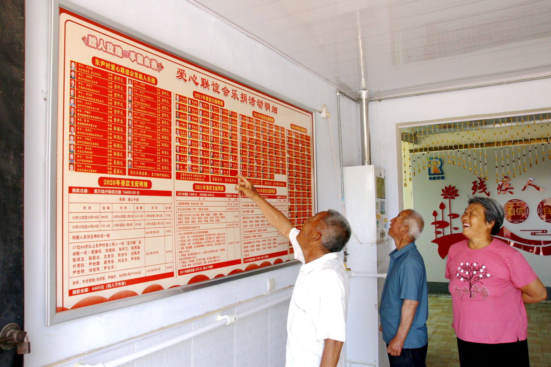 2021年,东尹村爱心联谊会为本村7位大病花费5万元以上的家庭予以救助;2022年重阳节,为村里年满80周岁的老人发放了300元礼金;考虑到老人们如厕难,还为老人们发放了移动座便椅……