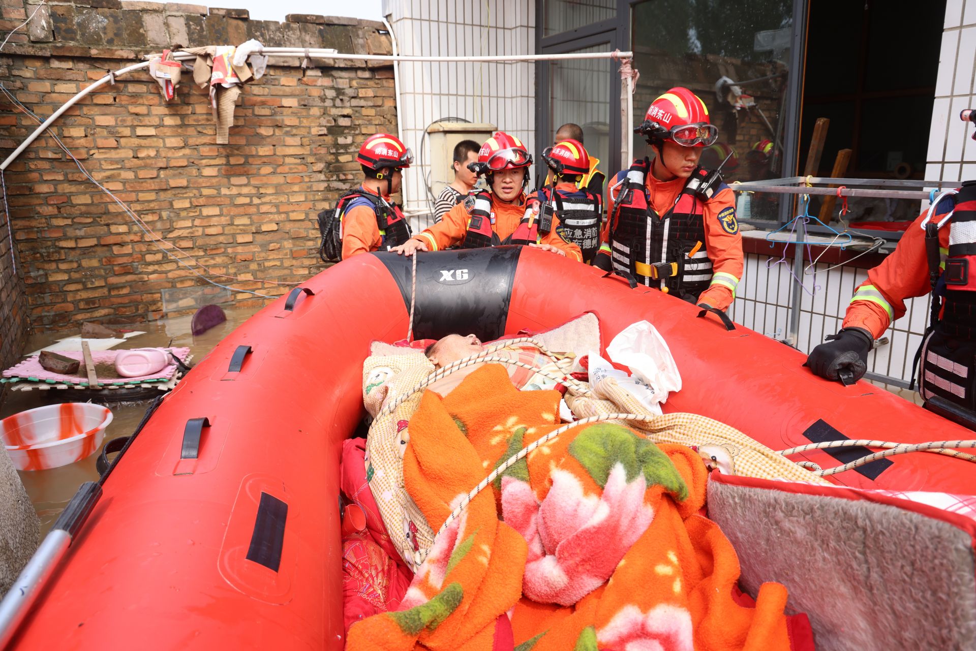 消防救援人员立即将救援绳索从老人床上被褥下穿过,进行简单固定,然后几名队员抓住被褥合力将老人转移到橡皮艇上。随后,两名家属也登上橡皮艇。9时30分左右, 3人被成功营救。到达安全地带后,行动不便老人被转运到120急救车上,送往医院检查。