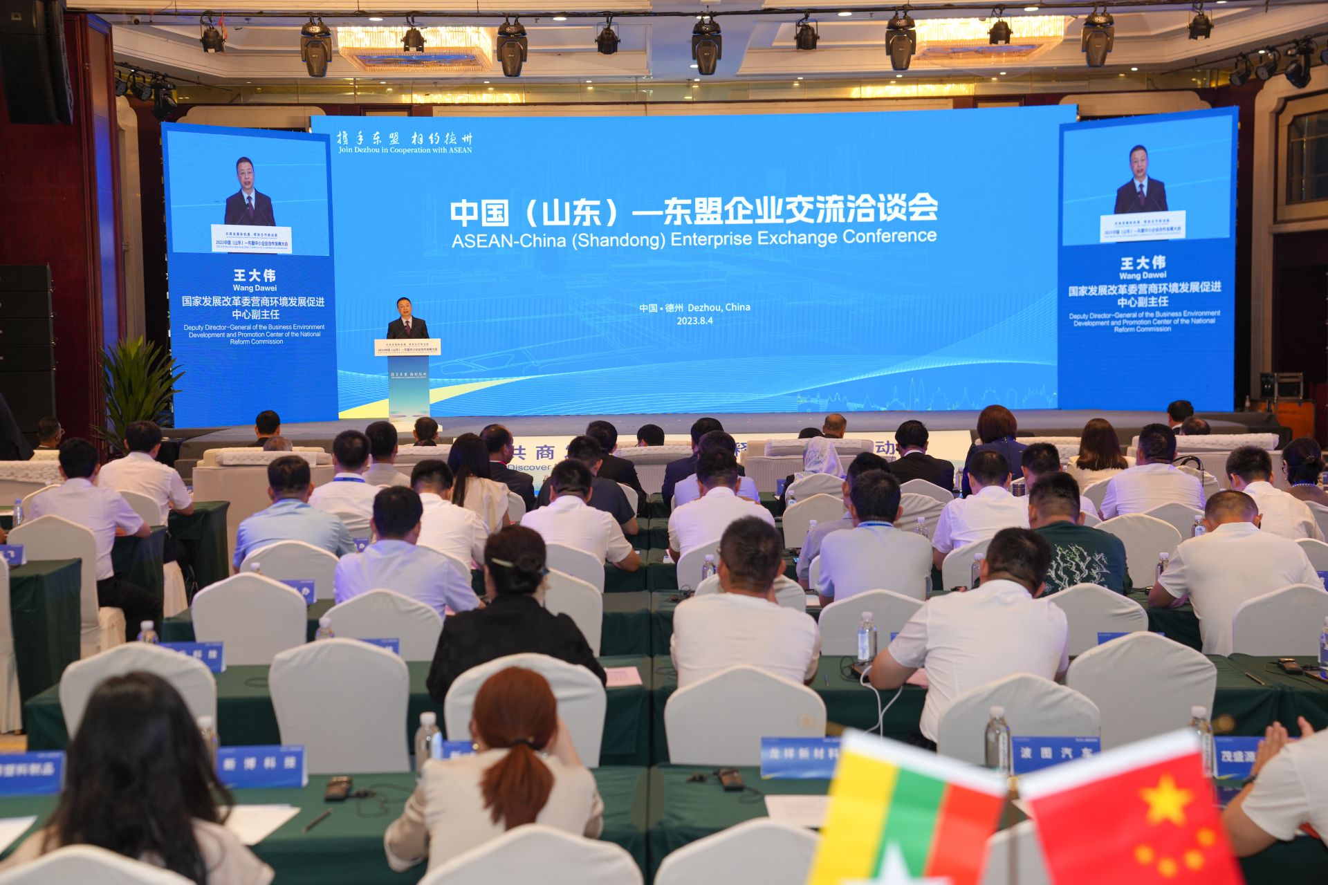 8月4日下午,中国(山东)— 东盟企业交流洽谈会举行。菲律宾驻华大使吉米、马来西亚驻华使馆商务处公使衔参赞尼克曼·拉法易等外国嘉宾推介了各国投资政策,国家发展改革委营商环境发展促进中心副主任王大伟、山东省政务服务管理办公室主任鲍彩耀在会上发言,市委常委、常务副市长宿胜推介我市投资政策及营商环境。