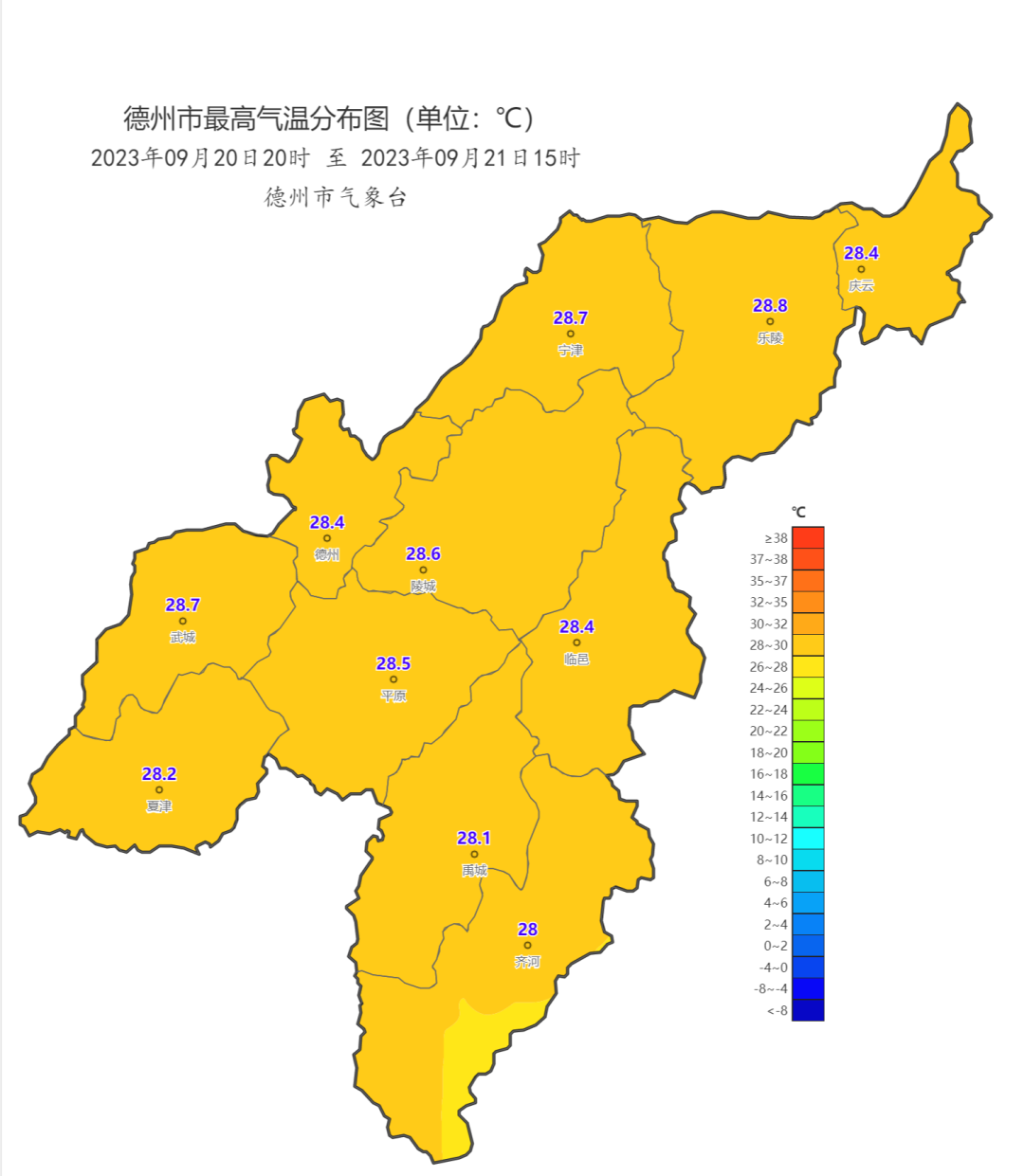 全市最高气温28.8℃
