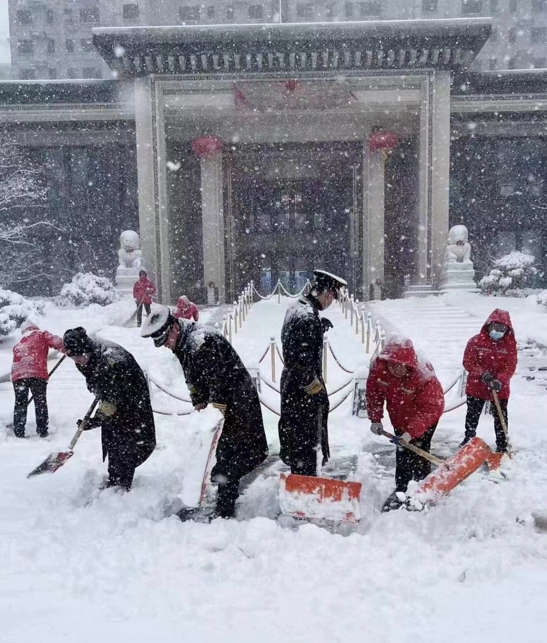 市住建局物管科应对本次寒潮天气,第一时间下发通知、启动应急预案,确保居民外行畅通、居住安全。