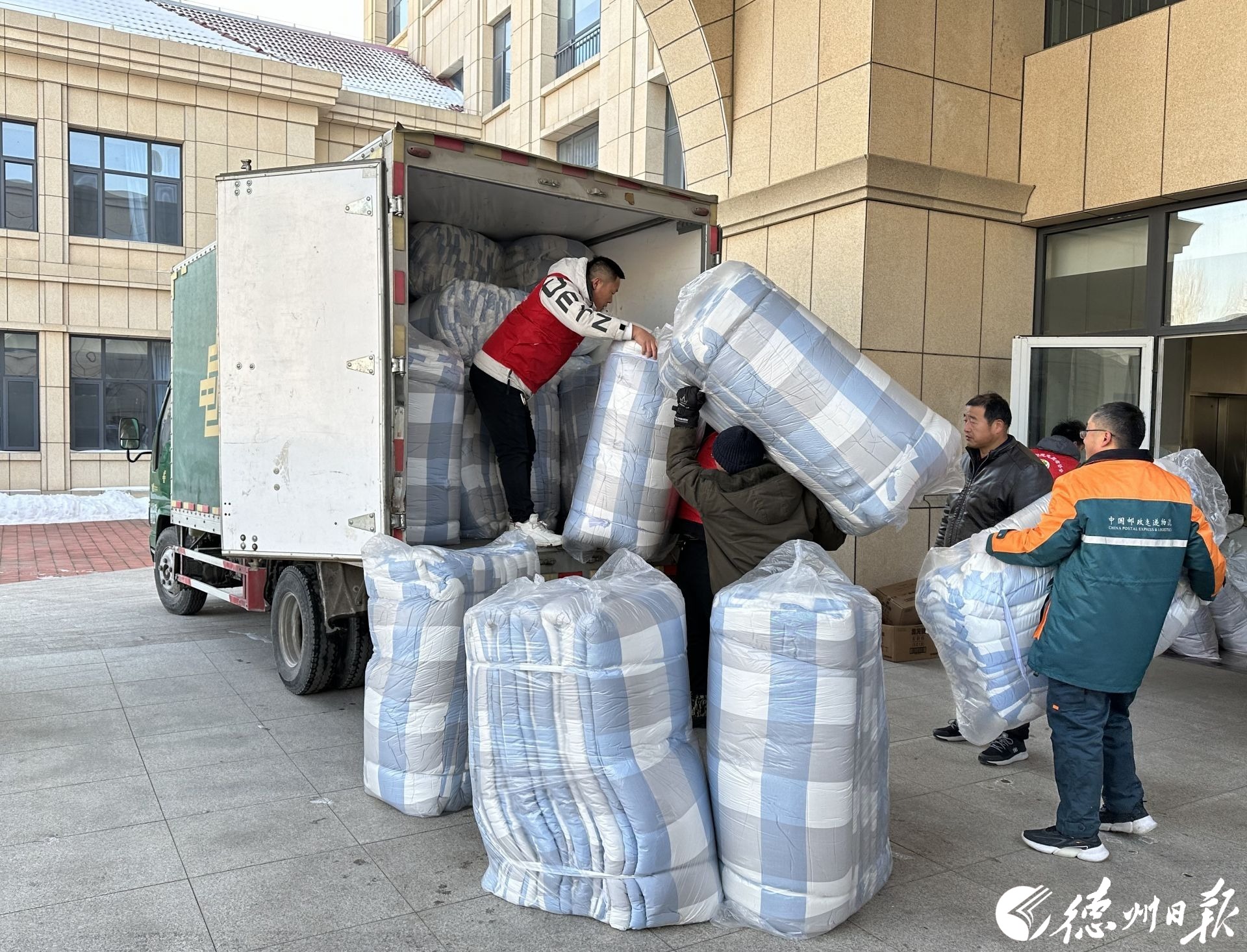 12月24日,室外寒风阵阵,德州市残疾人康复中心内却是一派火热景象。20余名志愿者分工协作,将社会各界捐赠的爱心物资清点、分拣、打包,送上2辆中国邮政专用运输车。这些饱含德州人深情厚谊的爱心物资即将启程,跨越1500余公里,前往全国人民心系之处——甘肃省积石山县。