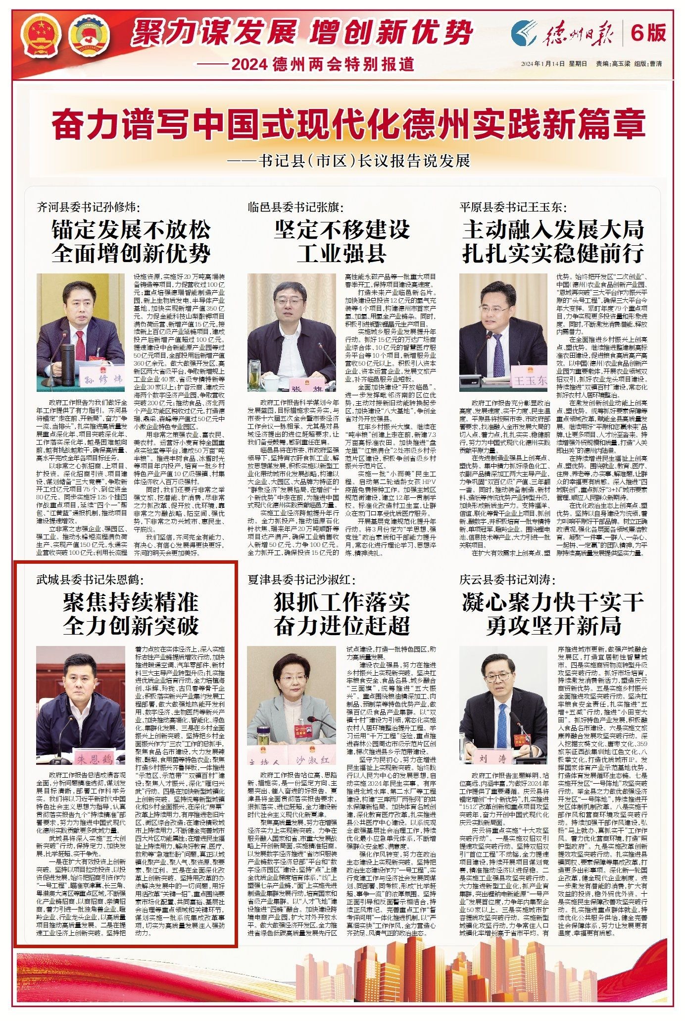 武城县将深入实施“五大创新突破”行动,保持定力、加快发展,比学赶超、实干争先。