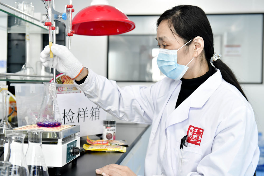工作人员在乐陵市调味品产业共享实验室对送样调味品进行检测。新华社记者 郭绪雷 摄