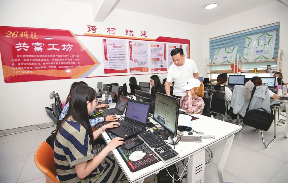 庆云县常家镇共富工坊吸引周边村民从事电商业务,实现“家门口”就业。记者郭庆萍摄