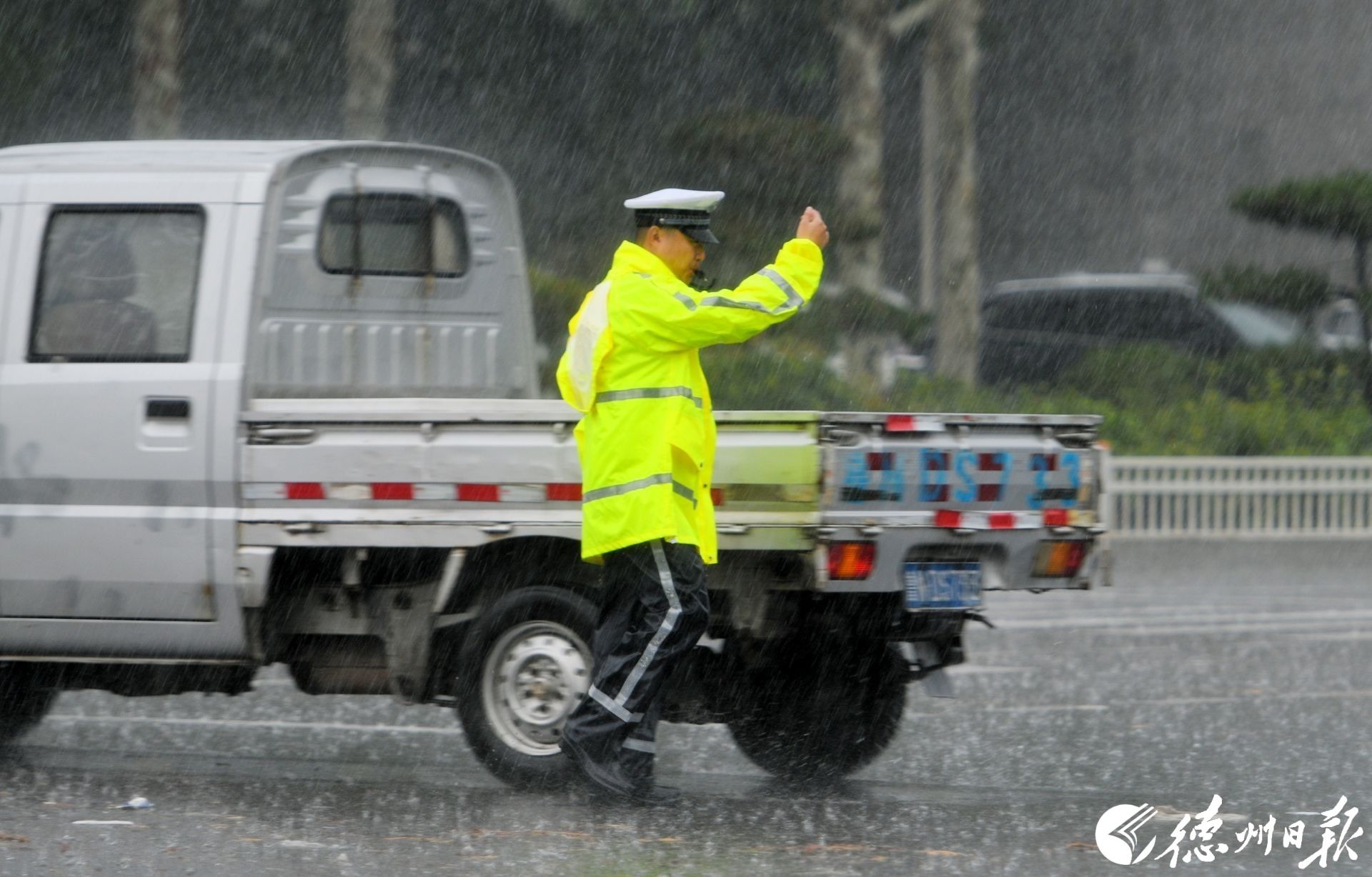 7月25日,我市迎来大范围降雨天气。我市公安交警部门全员坚守一线,冒雨指挥交通,疏堵保畅,最大程度降低和减少恶劣天气对道路通行造成的影响。