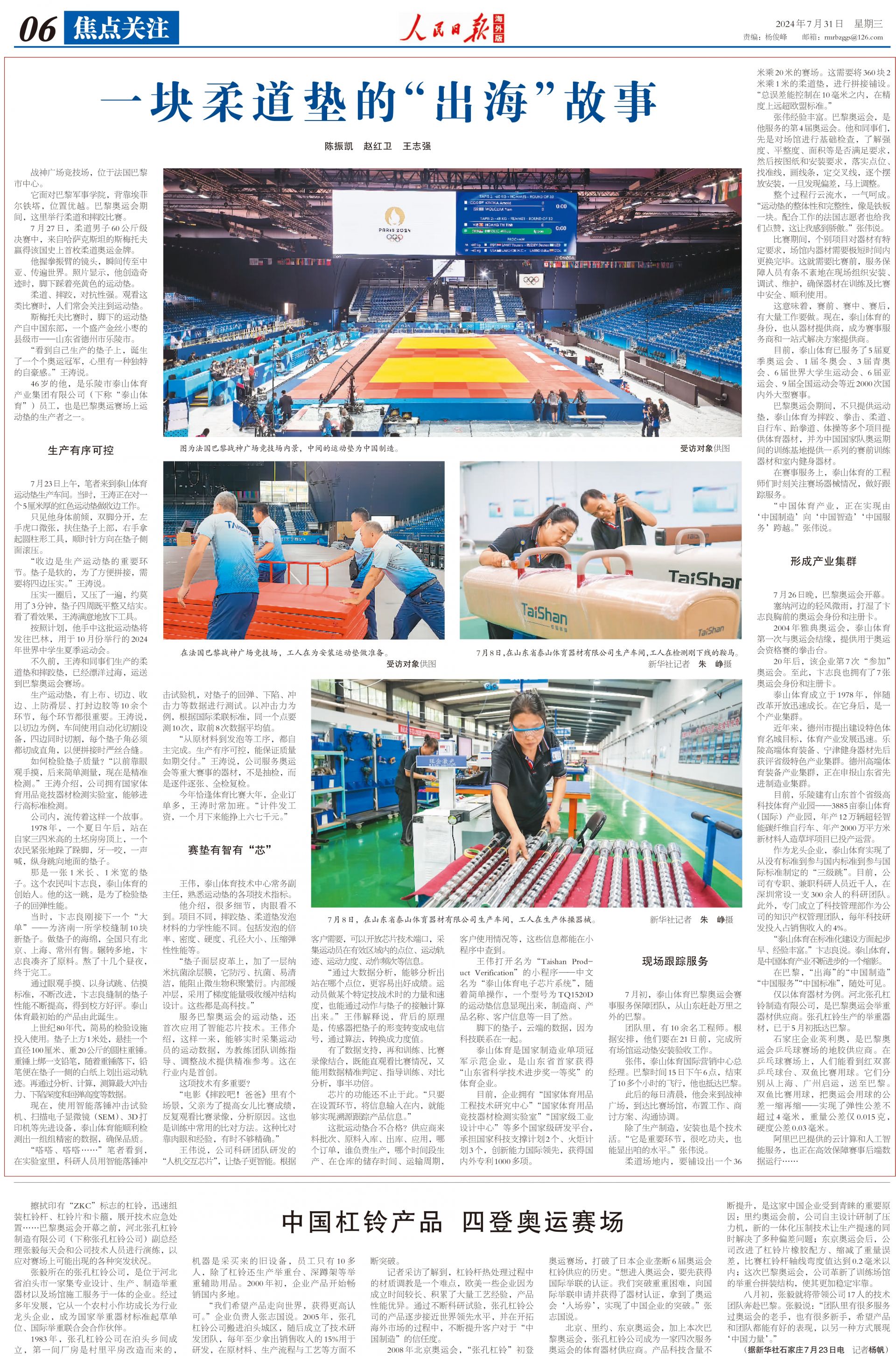 不久前,王涛和同事们生产的柔道垫和摔跤垫,已经漂洋过海,运送到巴黎奥运会赛场。