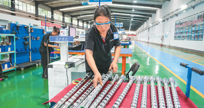 7月8日,在山东省泰山体育器材有限公司生产车间,工人在生产体操器械。新华社记者 朱峥 摄