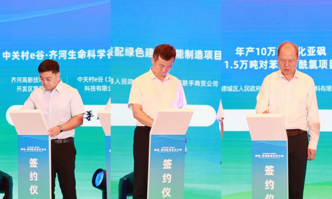 活动现场进行项目签约,签约项目包括中药材种植加工产业园项目、高端动力装备零部件研发制造项目在内的42个,总投资300多亿元,涉及新一代信息技术、高端装备、新能源新材料、食品加工等主导产业。活动中推介了德州市招商引资及对外合作项目、德州市文旅产业及对外合作文旅项目、德州天衢新区招商引资。