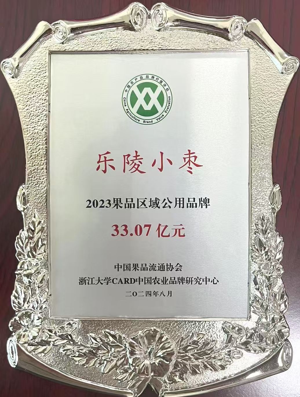 8月23日,由浙江大学CARD中国农业品牌研究中心、中国果品流通协会等单位联合开展的“2023中国果品区域公用品牌价值榜”在云南发布。全国1097个区域公共品牌参评,116个品牌上榜,乐陵小枣以33.07亿元的区域公共品牌价值,位居陕西的大荔冬枣、新疆的若羌红枣之后,为全国红枣类品牌第三。