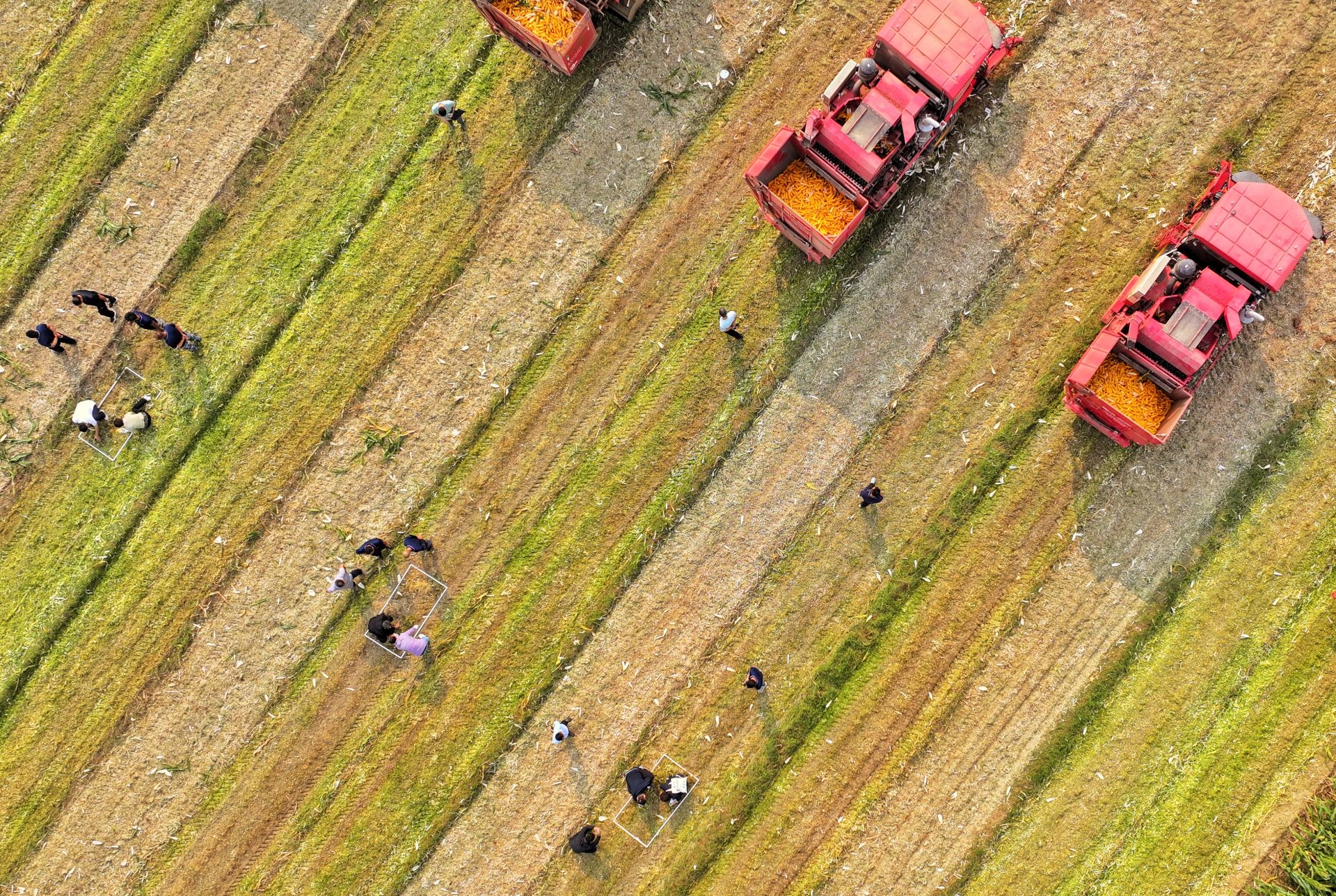 作业结束后,专家测评组迅速进场,通过捡拾框定范围内的玉米落粒、称重,现场测算机收损失率。据了解,本次大比武共划分10个作业区,10名农机手顺序作业,根据损失率的大小决出参赛机手的名次,比赛最终评出一、二、三等奖。