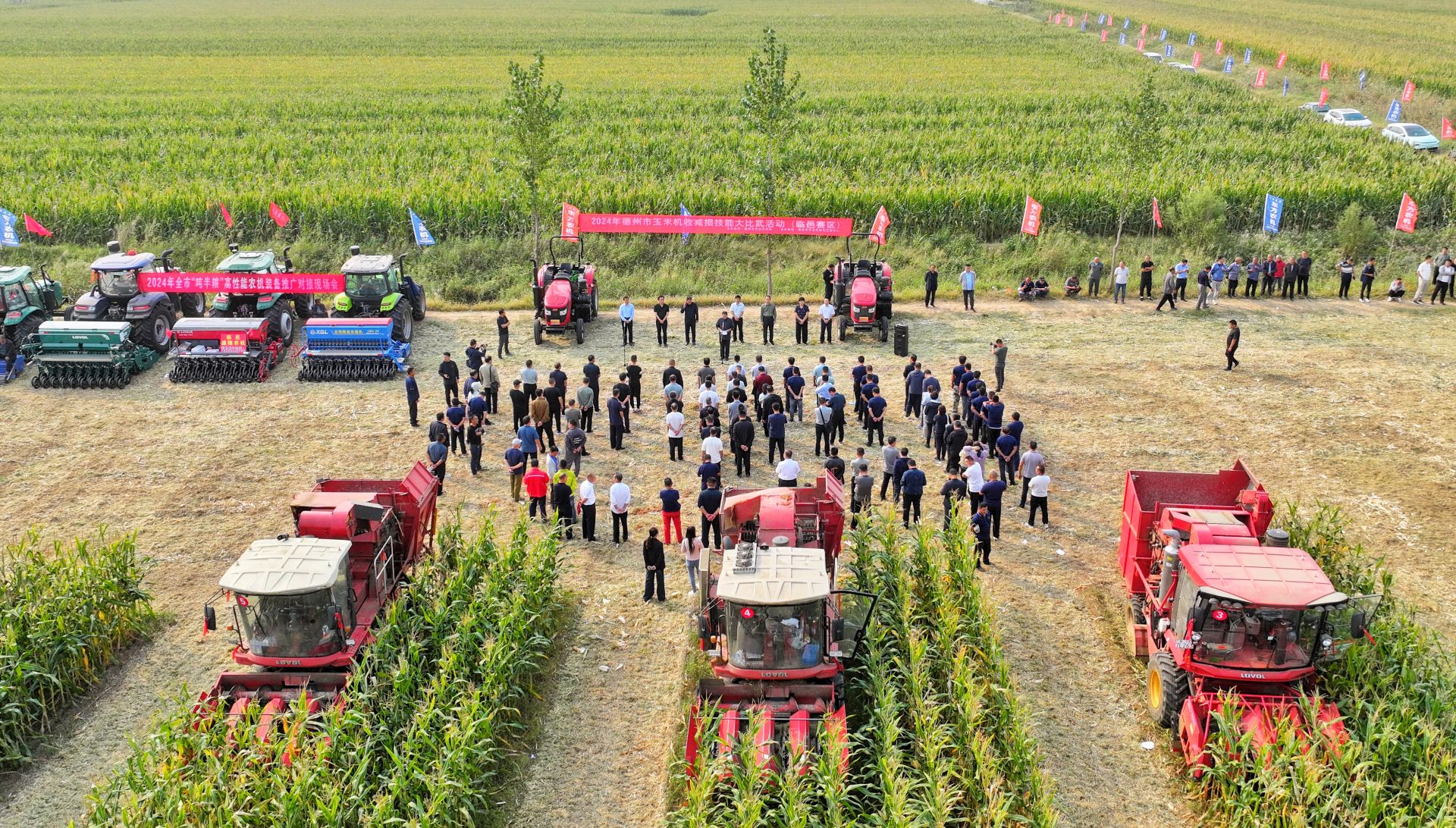 9月27日,2024年德州市玉米机收减损技能大比武活动(临邑赛区)在临邑县临邑镇望楼村举行。