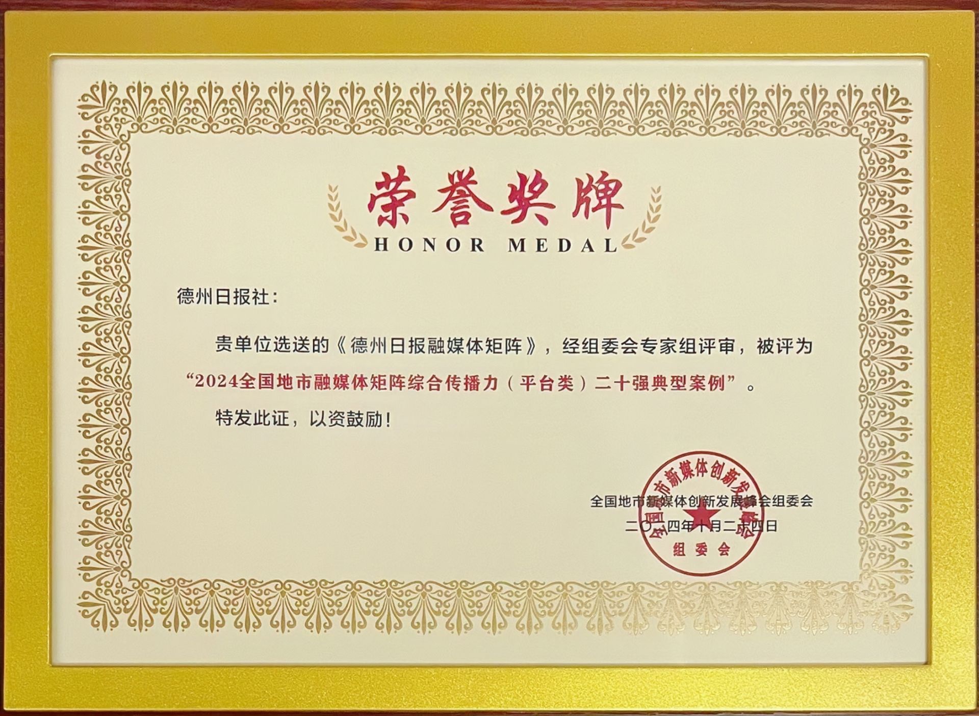 ● 德州日报融媒体矩阵被评为2024全国地市融媒体矩阵综合传播力(平台类)二十强典型案例;