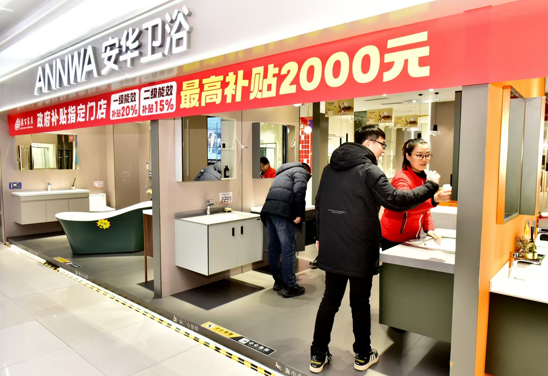 家电消费旺,家居消费数据也持续走高。德百家居广场“政府补贴持续发力”标识随处可见。“算了算,这一套下来能省1200多元。”12月11日下午,市民杨丁相中了一套安华卫浴产品,以旧换新补贴、品牌优惠让他当即下单。