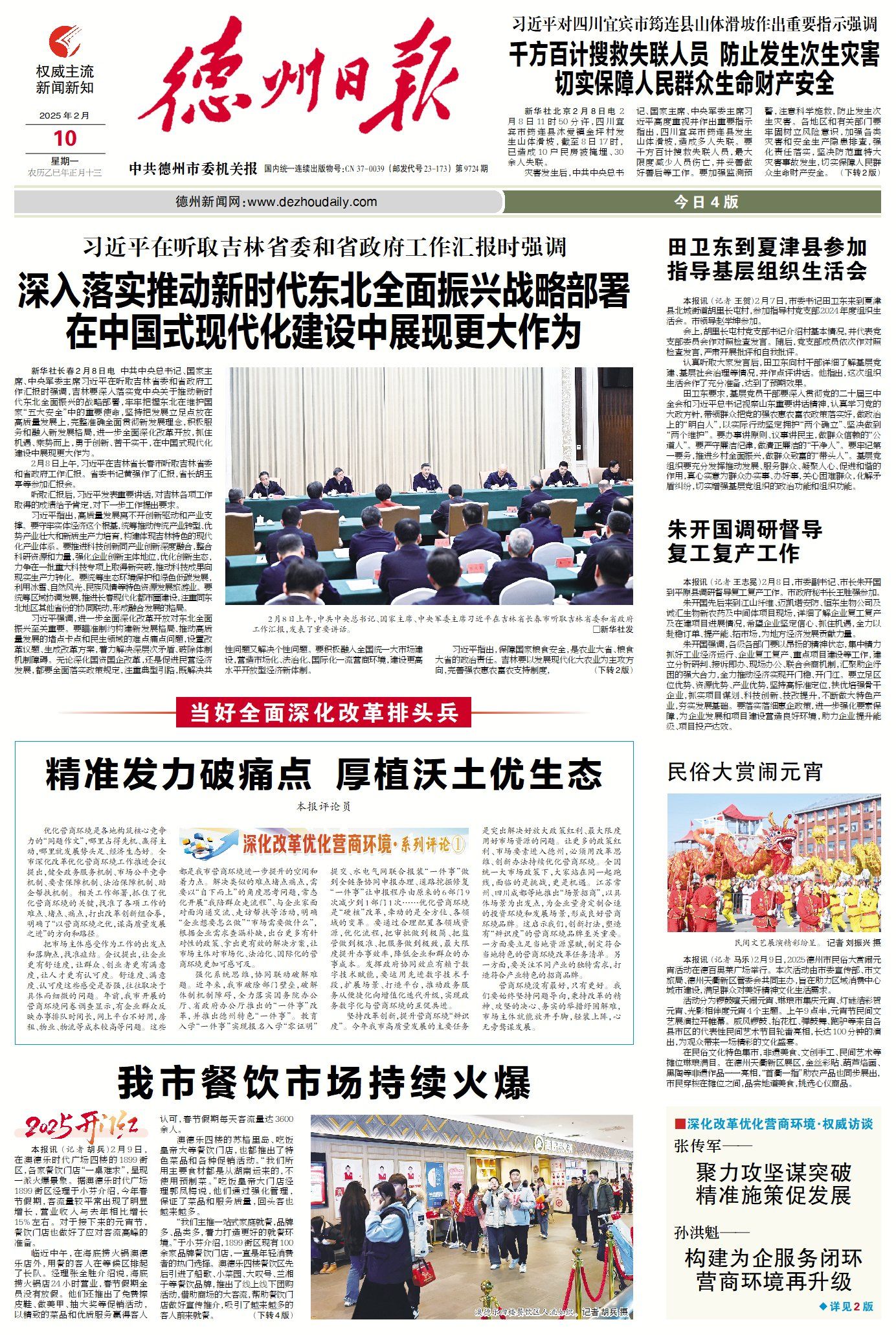 坚持改革创新,提升营商环境“辨识度”。今年我市高质量发展的主要任务是突出解决好放大政策红利、最大限度用好市场资源的问题。让更多的政策红利、市场要素进入德州,必须用改革思维、创新办法持续优化营商环境。全国统一大市场政策下,大家站在同一起跑线,面临的是挑战,更是机遇。江苏常州、四川成都等地推出“场景招商”,以具体场景为出发点,为企业量身定制合适的投资环境和发展场景,形成良好营商环境品牌。这启示我们,创新打法,塑造有“辨识度”的营商环境品牌至关重要。一方面要立足当地资源禀赋,制定符合当地特色的营商环境改革任务清单。另一方面,要关注不同产业的独特需求,打造符合产业特色的招商品牌。